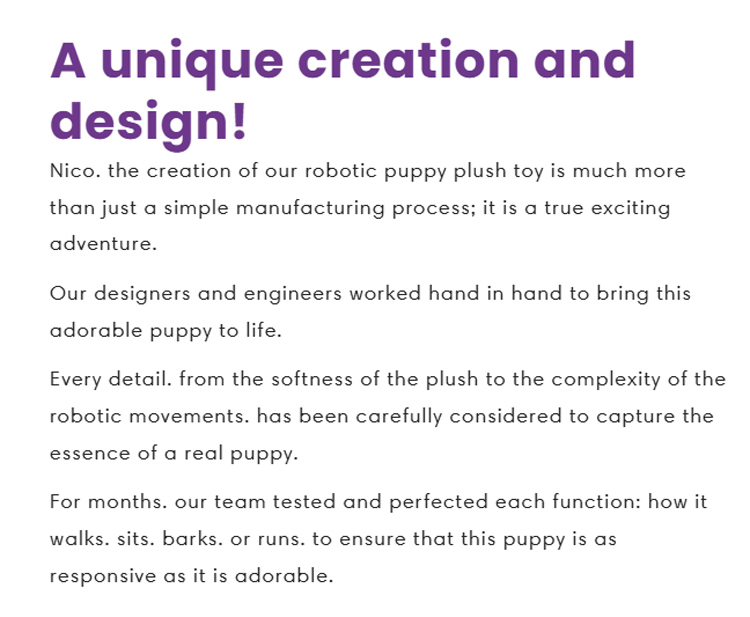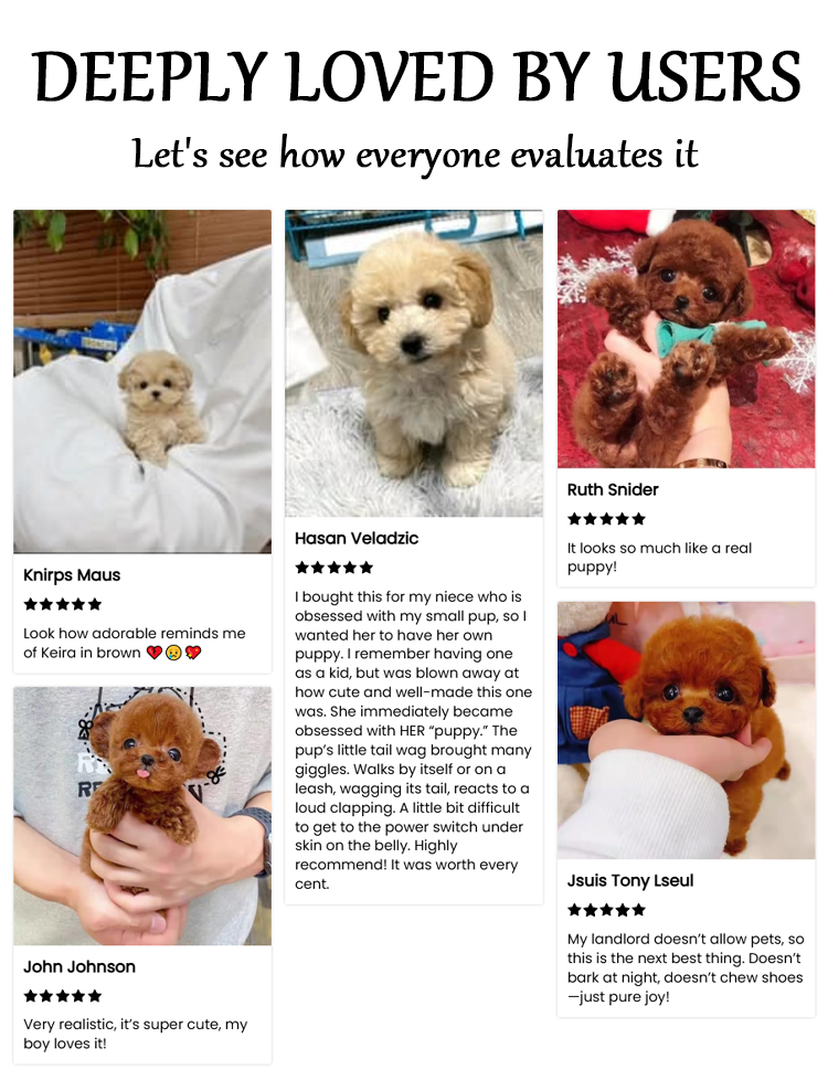 Soft and cuddly, doesn't shed, with incredibly realistic hand-carved details, this non-toxic and eco-friendly robotic puppy provides quiet companionship without causing any trouble—a "zero-burden pet" loved by the whole family!
